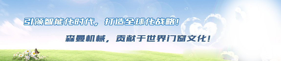 “森曼機械”作為全球門窗設(shè)備供應(yīng)商,本著"seaman"精神,勇立潮頭,拼搏創(chuàng)新,以爭做行業(yè)為目標,在行業(yè)前輩發(fā)展的基礎(chǔ)上,努力學習,積極進取。目前公司產(chǎn)品涵蓋塑料門窗設(shè)備、鋁合金門窗設(shè)備、鋁幕墻設(shè)備、鋁木復合門窗設(shè)備及中空玻璃設(shè)備五大種類,近百個品種。公司產(chǎn)品銷售至全國各地及東南亞、非洲、東歐、北美等幾十個國家和地區(qū)。在這個競爭激烈的年代,我們正努力使我們的產(chǎn)品!